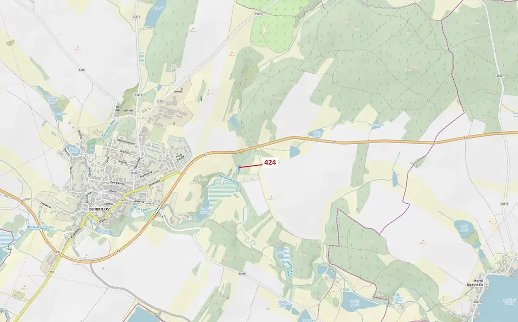 Lesní pozemek o výměře 967 m2, parcelní číslo 424, podíl 1/1, katastrální území Strmilov, obec Strmilov, obec s rozšířenou působností Jindřichův Hradec, okres Jindřichův Hradec, Jihočeský kraj.