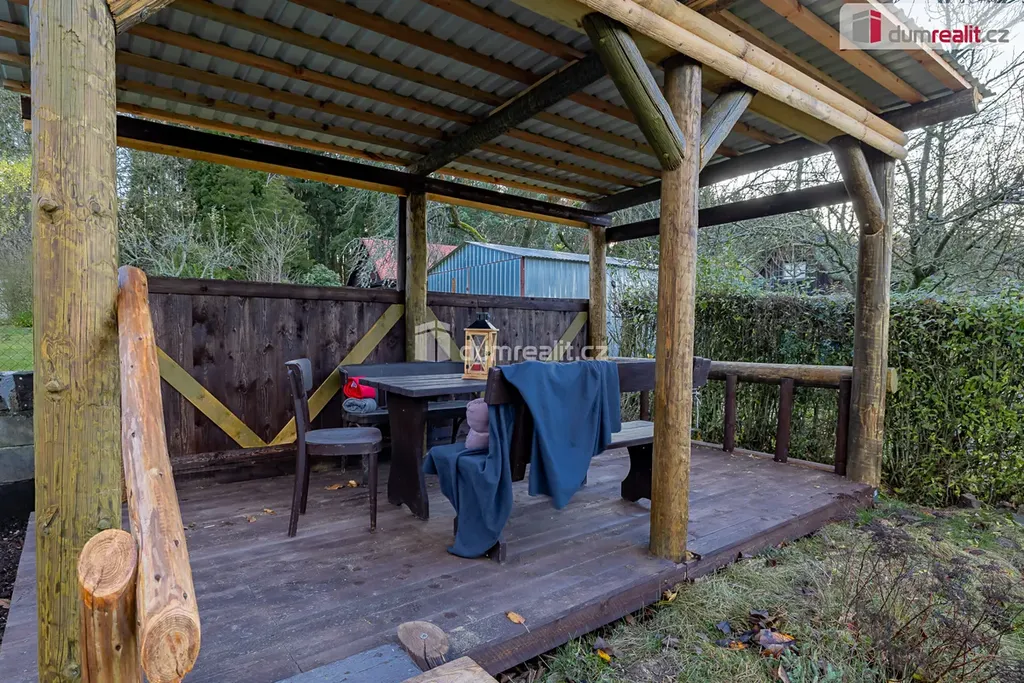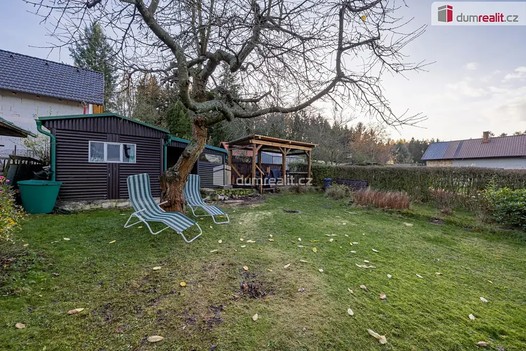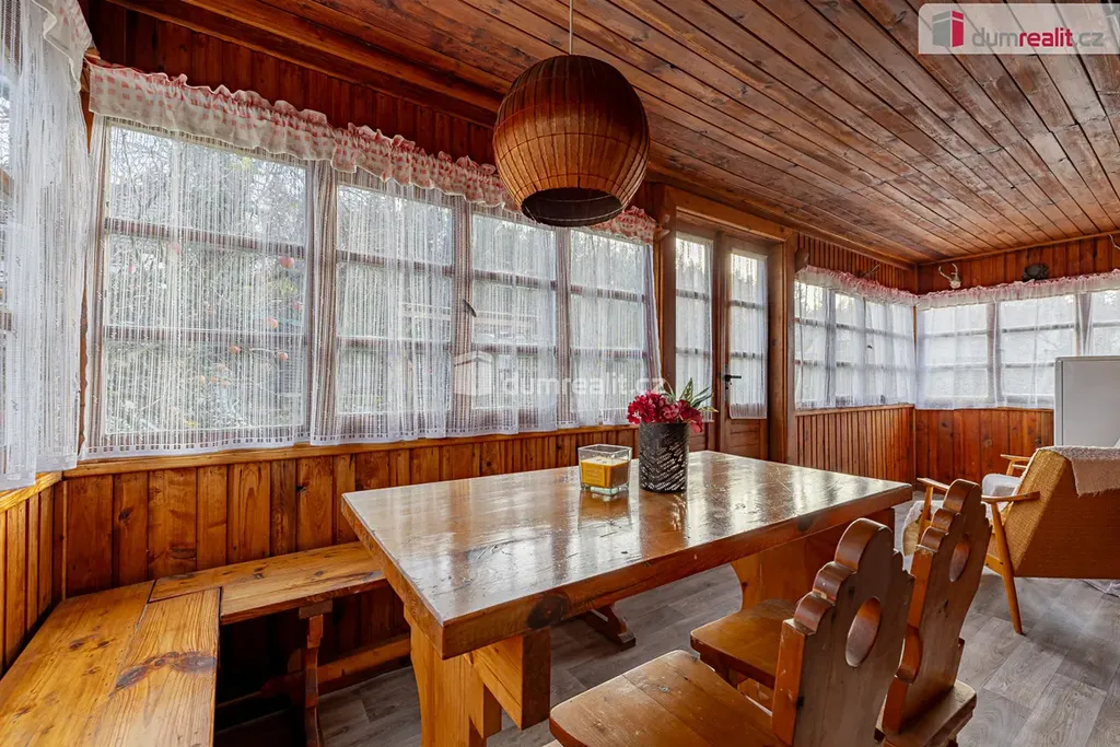 Prodej chaty o zastavěné ploše 47 m² na Bucku, s pozemkem o celkové výměře 474 m². Na pozemku se nachází ještě zahradní domek na nářadí a pergola. Chata se skládá z prosklené verandy s jídelní částí, obývacího pokoje, jednoho neprůchozího pokoje, kuchyňky, koupelny se sprchovým koutem a wc, kde je i vstup do sklepa.