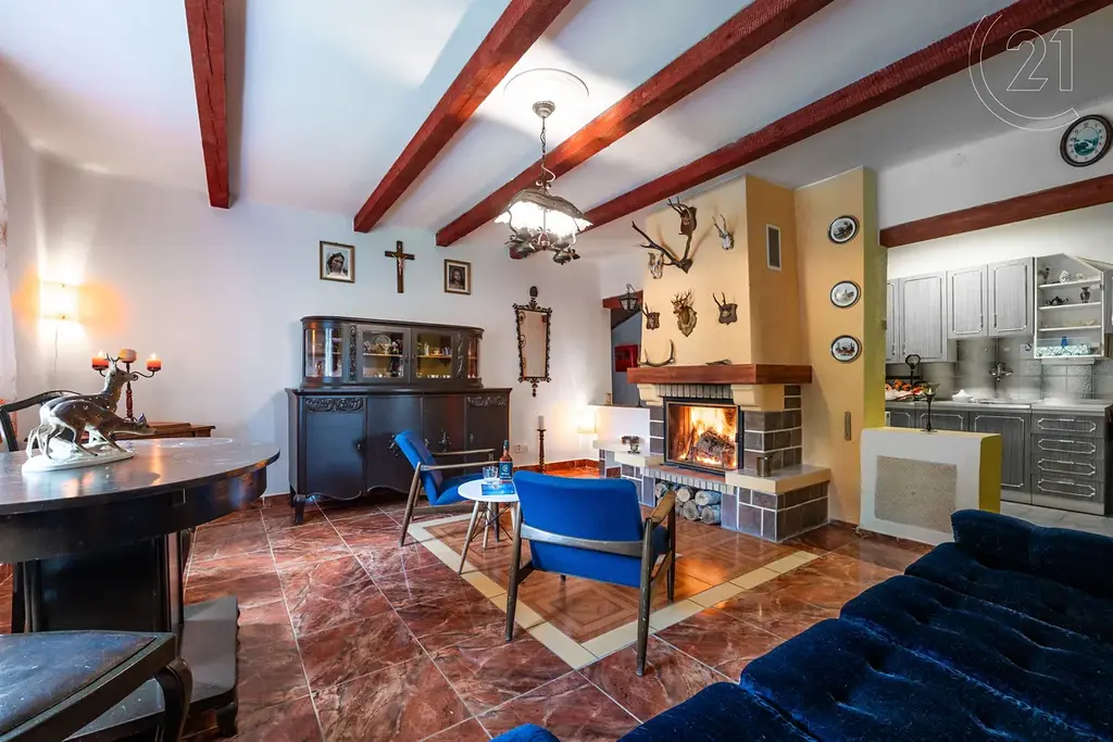 Vytápění: Krb nebo kotel na dřevo /uhlí / možnost využití dřeva z vlastního lesa na pozemku/