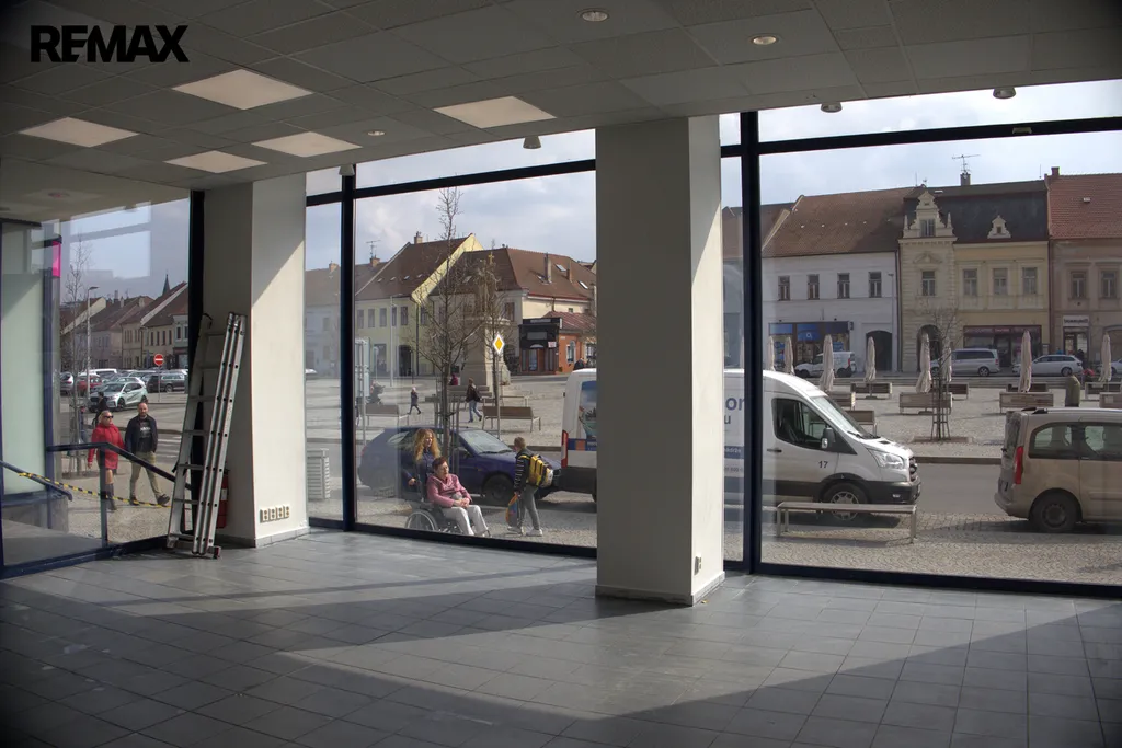 Lokalita: Umístění přímo v centru města na náměstí, kde je hustý pohyb lidí díky blízkým zastávkám MHD a autobusovému nádraží.