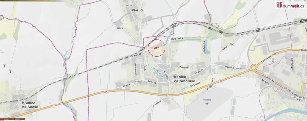 Pozemek se nachází v obci Hranice, v katastrálním území Drahotuše.
