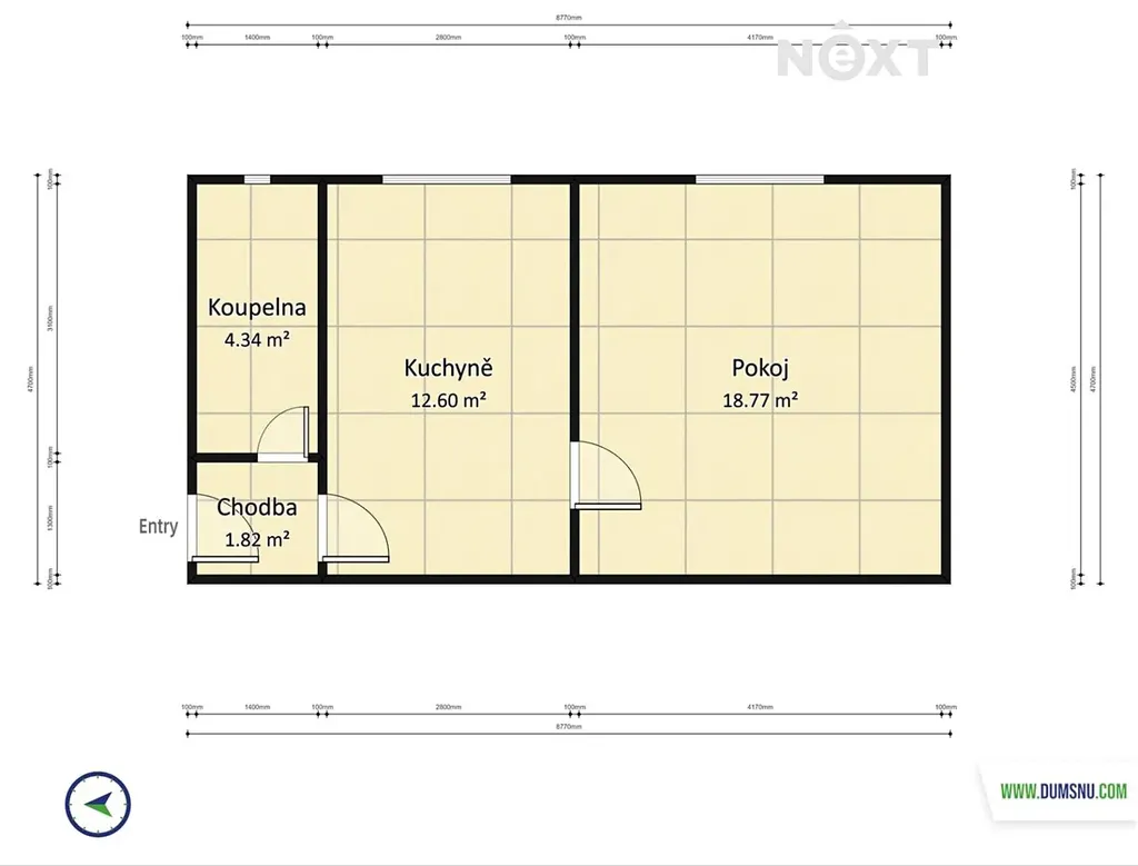 Z předsíně se dostanete do koupelny a do kuchyně, z níž se vstupuje do ložnice. Kuchyně je vybavena moderní linkou, elektrickou varnou deskou a vestavěnou troubou. Koupelna je osazena sprchovým koutem, umyvadlem se zrcadlem a toaletou. Všechna okna jsou orientována na východ.