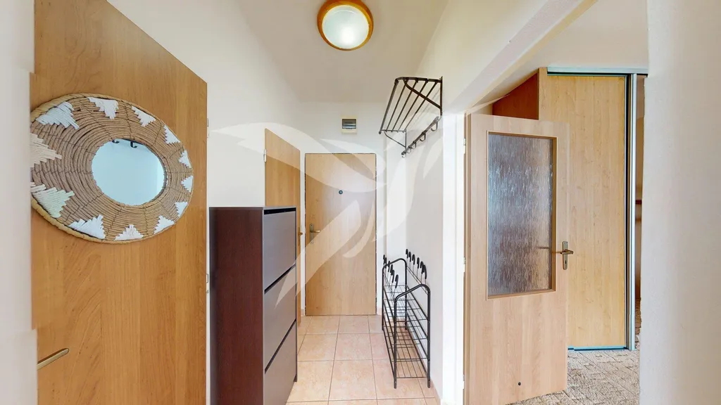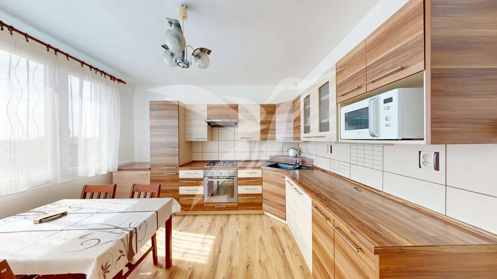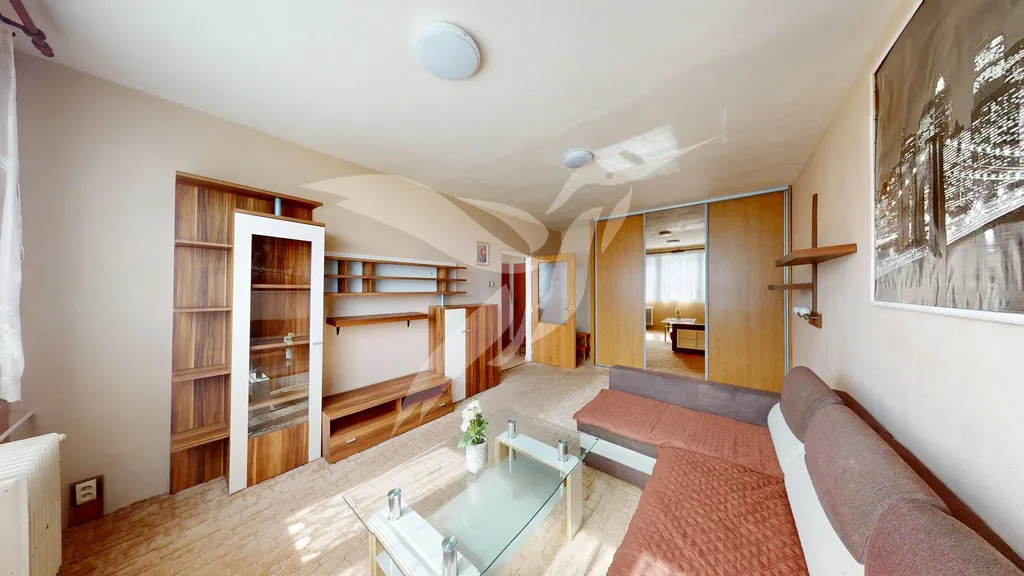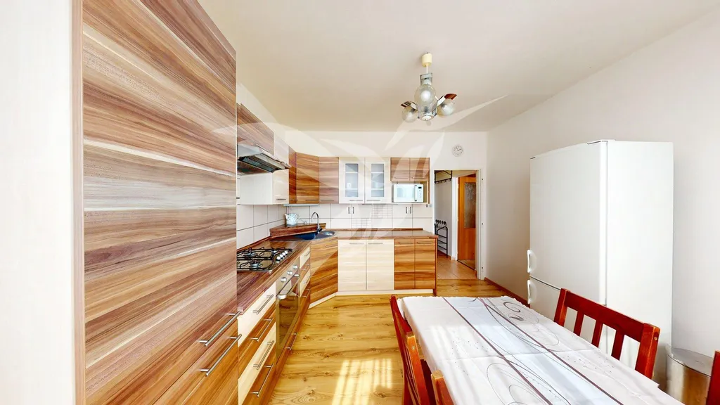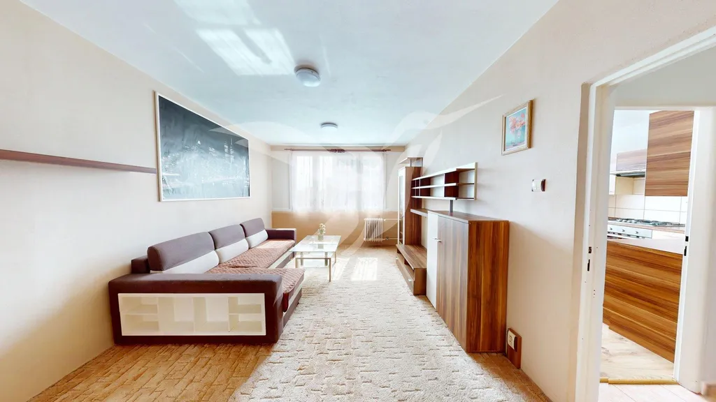 Bytová jednotka o velikosti 39 m2 se nachází v 6. NP panelového domu s výtahem a skládá se z předsíně, samostatného pokoje, pokoje včetně kuchyňské linky, koupelny, toalety a k bytu náleží i komora situovaná na patře bytového domu. Byt se pronajímá jako zařízený a jeho součásti je kuchyňská linka se spotřebiči (elektrická trouba, plynový sporák + digestoř, kombinovaná chladnička, MW trouba), dále jídelní set, sedací souprava, obývací/předsíňová stěna, vestavěná šatní skříň. Po domluvě je možnost nábytek i vystěhovat. Vytápění a ohřev vody je zajištěn dálkovými dodávkami.