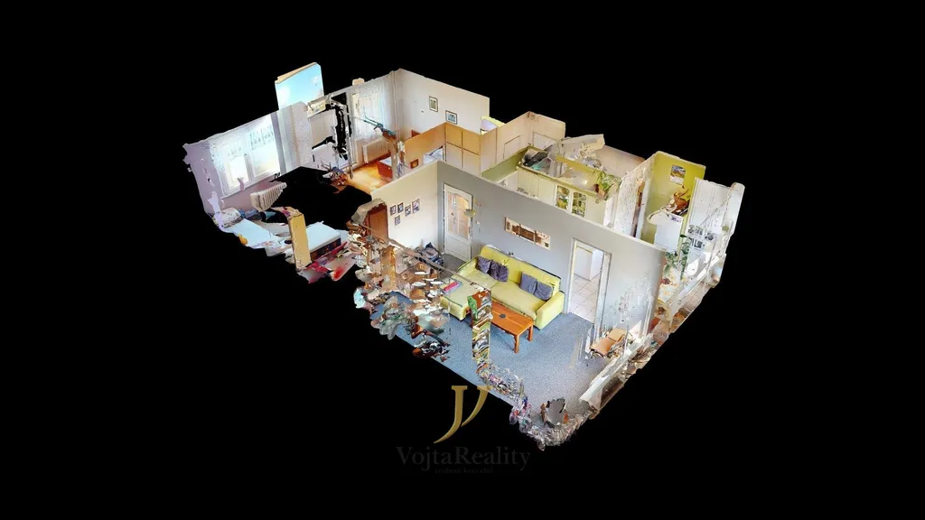 Fotografie bez nábytku byly pořízeny prostřednictvím grafické postprodukce a slouží výlučně pro porovnání dispozice, s či bez vybavení.