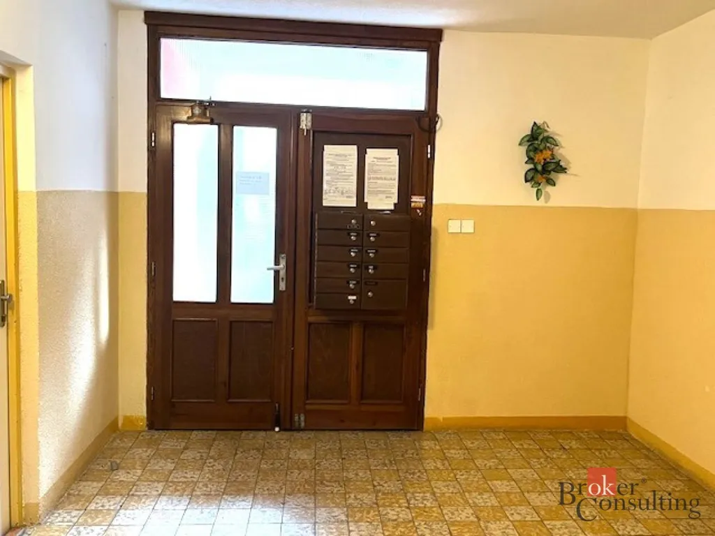 K bytu náleží také skladovací místnost v mezipatře, která poskytuje praktický úložný prostor navíc.