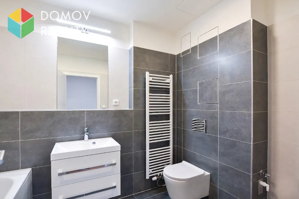 Jednotka je řešena v moderním standardu – plovoucí podlahy v dekoru dub, v koupelně dlažba. Kuchyňská linka je zcela nová a plně vybavená vestavěnými spotřebiči (trouba, mikrovlnná trouba, lednice s mrazákem, indukční varná deska, myčka). Koupelna nabízí vanu, umyvadlo se skříňkou a také místo pro pračku i sušičku.