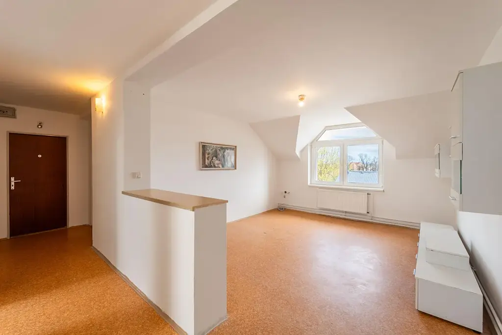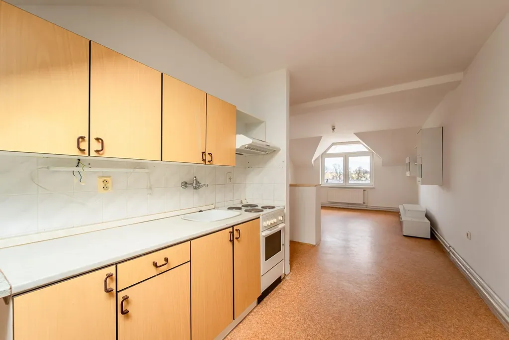 Nabízíme k pronájmu útulný podkrovní byt o dispozici 2+kk v klidné lokalitě na ulici Sladovní v Kojetíně. Byt o celkové výměře 60 m² nabízí dostatek prostoru pro pohodlné bydlení. Dispozice bytu zahrnuje vstupní chodbu s vestavěnými skříněmi, samostatnou ložnici, oddělené WC a koupelnu s vanou, umyvadlem a plynovým kotlem s bojlerem. Z chodby se vstupuje do obývacího pokoje s kuchyňským koutem, který je oddělen barovým pultem. Kuchyňská linka je původní a je vybavena elektrickým sporákem, troubou a menší lednicí. V obývacím pokoji se nachází obývací stěna, po domluvě lze dodat i gauč. Byt prošel úpravami, má nová střešní okna a je vymalován. Podlahy tvoří lino a dlažba. Výhodou je vlastní plynový kotel, který umožňuje nájemníkovi plnou kontrolu nad náklady na vytápění a ohřev vody. K bytu náleží sklep o velikosti cca 2,5 x 1,2 m. Byt je vhodný pro 2 až 3 osoby, nekuřáky. Majitel preferuje pracující osoby, menší domácí mazlíček je umožněn po domluvě. Byt je k nastěhování ihned.