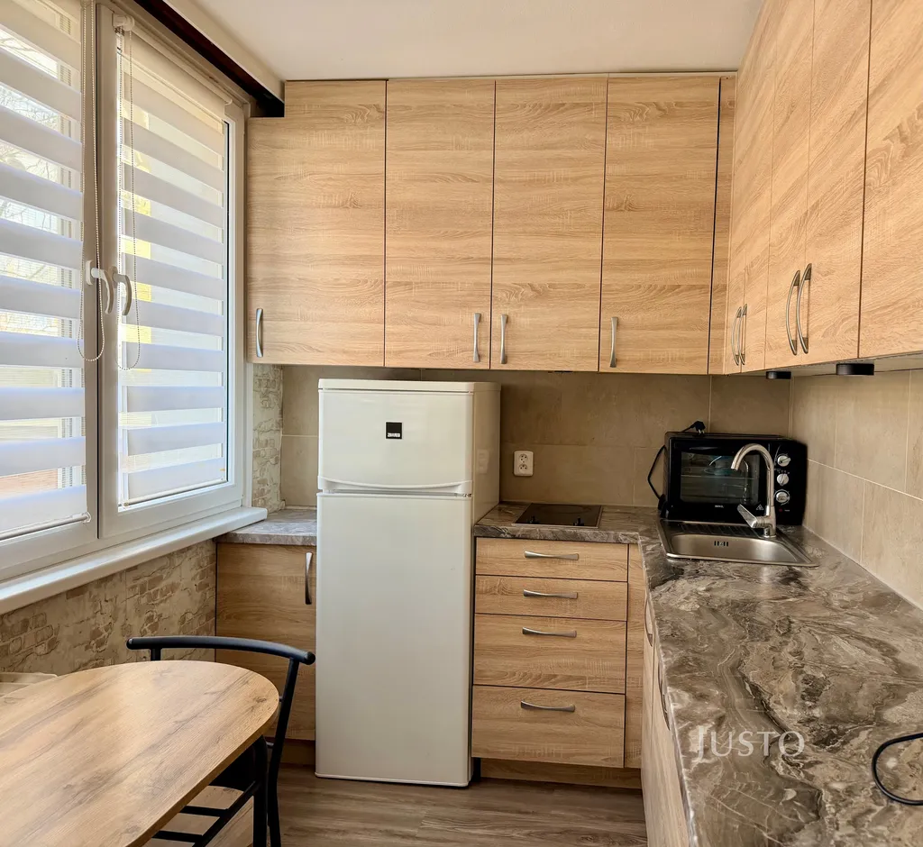 Byt je po rekonstrukci a nabízí světlý interiér s velkými plastovými okny, která zajišťují dostatek denního světla. Dispozice zahrnuje samostatný pokoj, kuchyň s jídelním koutem, koupelnu se sprchovým koutem a toaletou, předsíň a sklep. Součástí vybavení je kuchyňská linka se spotřebiči (lednice, mikrovlnná trouba, elektrická varná deska), pračka, televize a nábytek včetně postele, skříní a jídelního stolu. Byt je připraven k okamžitému nastěhování.