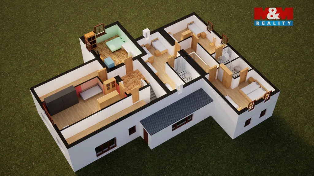 Hlavní část domu tvoří byt 4+kk se samostatným vstupem. Další 3 pokoje (cca 12 lůžek) slouží jako ubytování v soukromí – ideální pro krátkodobé pronájmy bez nutnosti dalších investic.