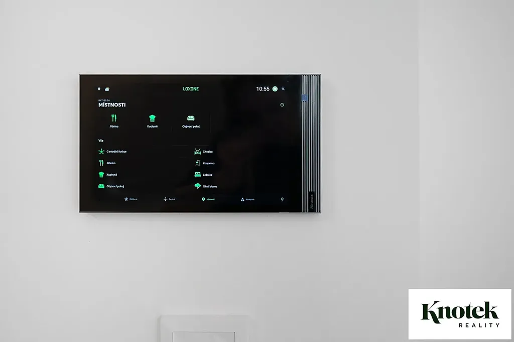 Technologická výbava zajišťuje naprostý komfort: rekuperace, inteligentní řízení přes Loxone, vytápění a chlazení pomocí tepelných čerpadel země–voda, které čerpají energii z 30 geotermálních vrtů – výsledkem je stabilní vnitřní klima a energetická třída A s mimořádně nízkými náklady na provoz.