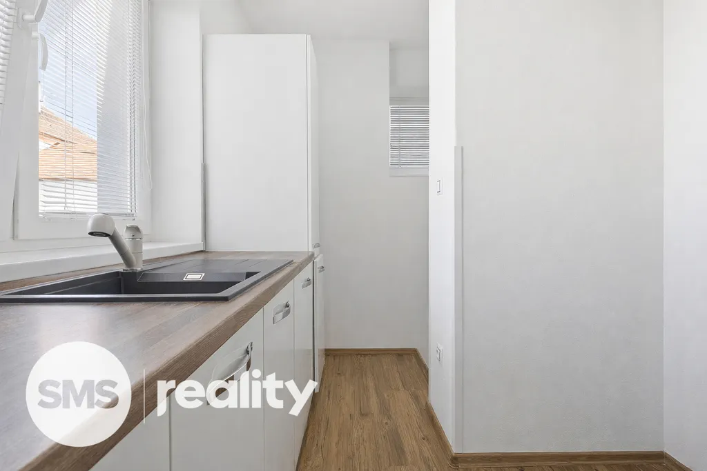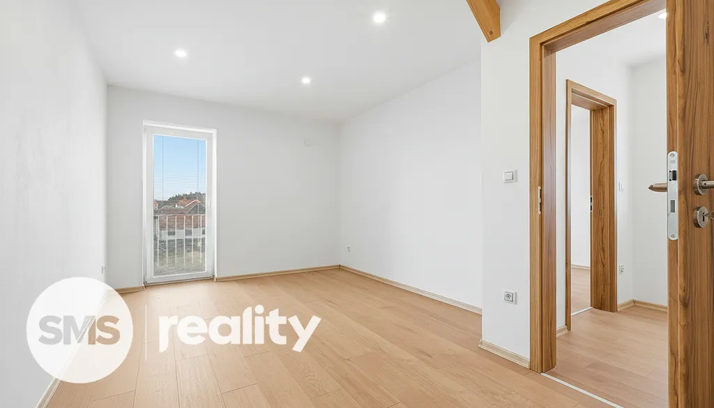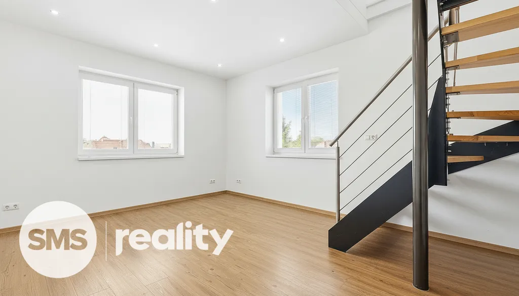 Ve spodním patře je umístěna moderní kuchyně vybavená vestavěnými spotřebiči (indukční deska, elektrická trouba, digestoř, lednice, myčka) a obývací pokoj, ze kterého vede schodiště do patra. Horní podlaží tvoří tři samostatné neprůchozí pokoje, šatna, koupelna a oddělená toaleta. K bytu náleží také balkon.
