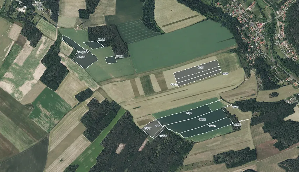 -> parc. č. 379/11, 379/12, 379/19, 379/20, 379/21, 400/2, 400/3, 400/4, 439, 459/4, 459/7, 459/18, 459/20, 459/21, 459/22, 459/27, 459/28 (LV 506)