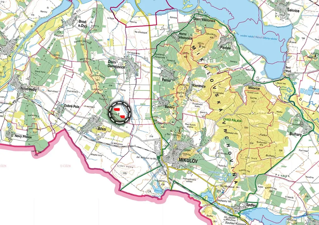 Zapsány jsou parcely na listu vlastnictví 1323 pod parcelními čísly 6484, 7238 a 7239 v katastrálním území Dolní Dunajovice. Jedná se o zemědělskou lokalitu s příhodnými klimatickými podmínkami. Daří se zde teplomilným plodinám, včetně vinné révy. Kvalitní orná půda zde má širokou škálu využití. Naměřené BPEJ na pozemcích je nadprůměrné i v rámci katastrálního území.