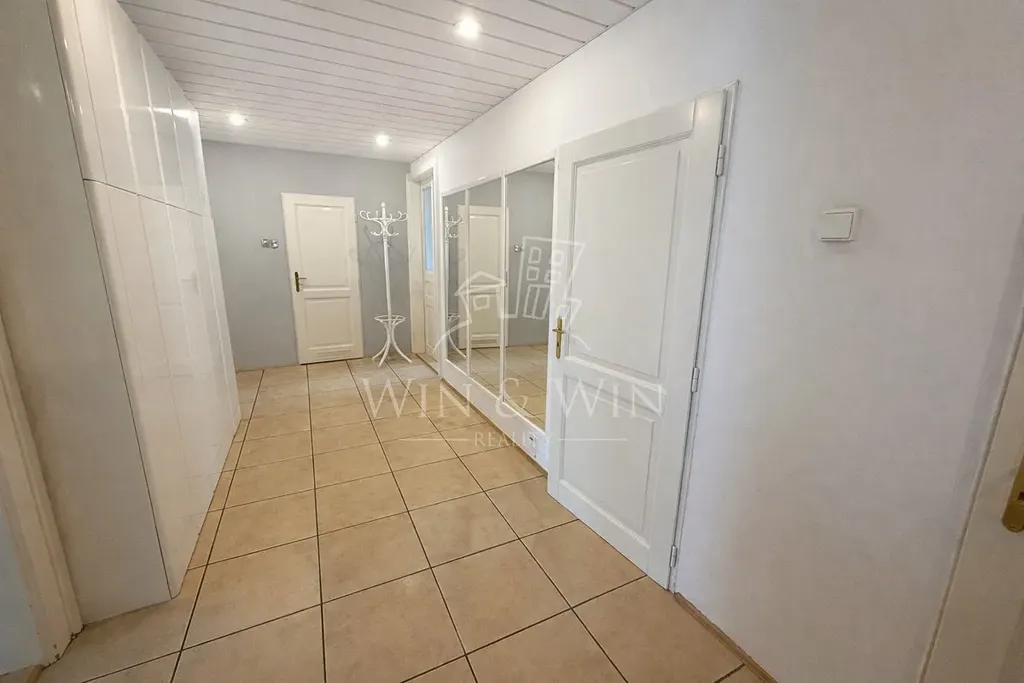 Prostorný byt o rozměrech 120 m² s vysokými stropy a vzdušným pocitem se nachází v přízemí činžovního domu. Velkorysé, světlé pokoje a promyšlené úložné prostory díky vestavěným skříním. Ideální pro rodinu i komfortní bydlení s elegancí a praktičností.