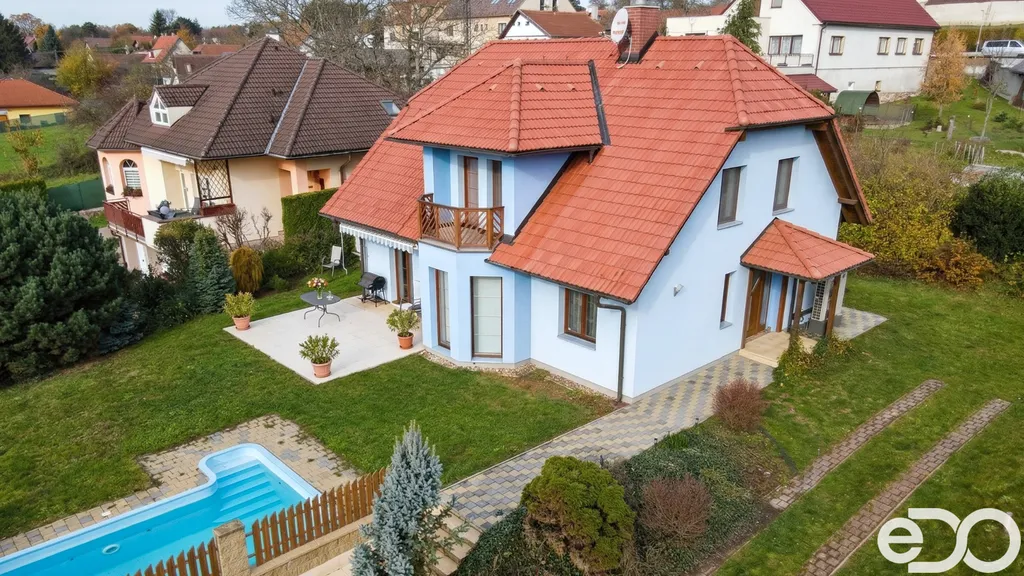 Zahrada (750 m²): Udržovaný pozemek s podzemním bazénem, posezením s grilem a zahradním domkem.