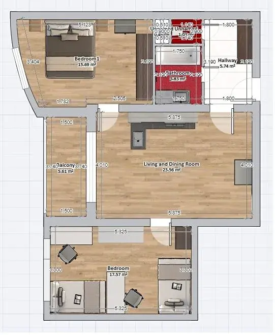 Byt nabízí praktické dispoziční řešení dva pokoje, obývací pokoj s kuchyní, koupelnu, samostatné WC a lodžii. K bytu náleží i sklep o ploše cca 3 m² a společná kolárna i sušárna.