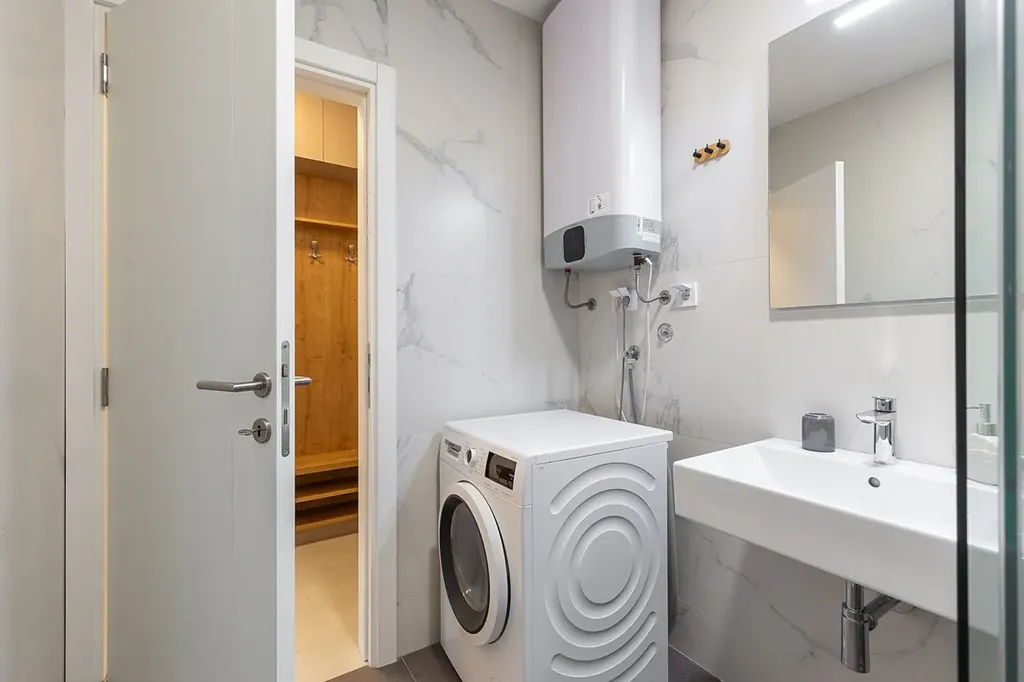 Kuchyně je plně vybavena moderními spotřebiči, které zajišťují komfort a praktičnost v každodenním používání. Dvě ložnice jsou útulně zařízené, s dostatkem prostoru pro uložení a odpočinek. K dispozici je moderně zařízená koupelna. Jedním z hlavních lákadel tohoto bytu je balkon, díky kterému můžete vychutnat kávu či jen relaxovat s výhledem na moře. Byt k dispozici k okamžitému nastěhování.