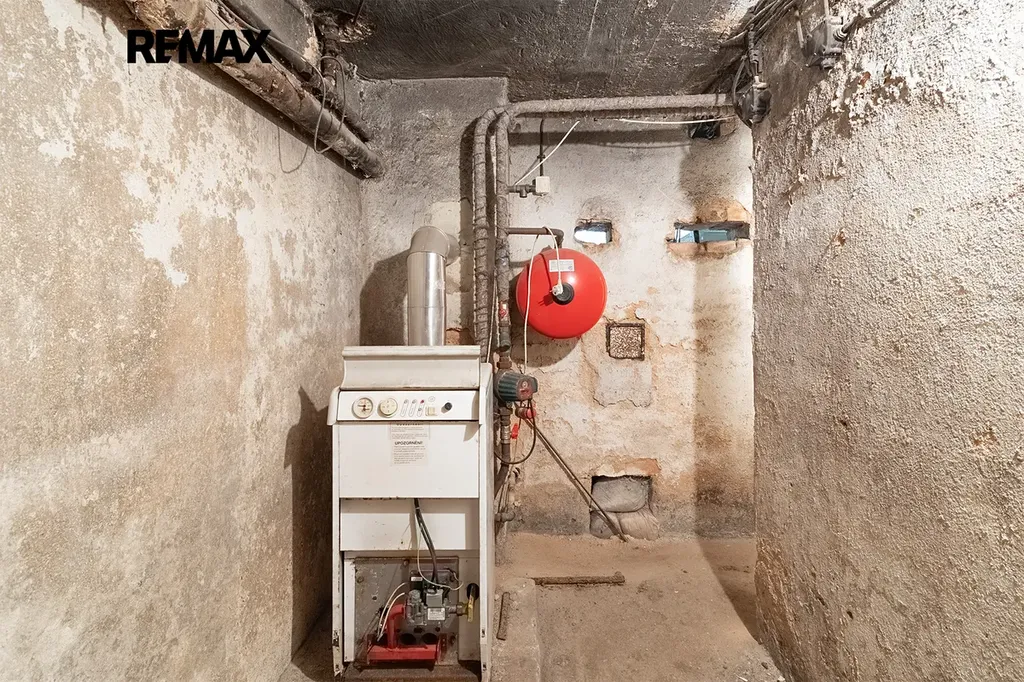 Vytápění je zajištěno plynovým kotlem, ohřev vody řešen elektrickým bojlerem.