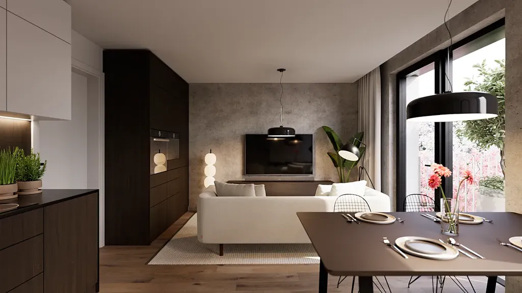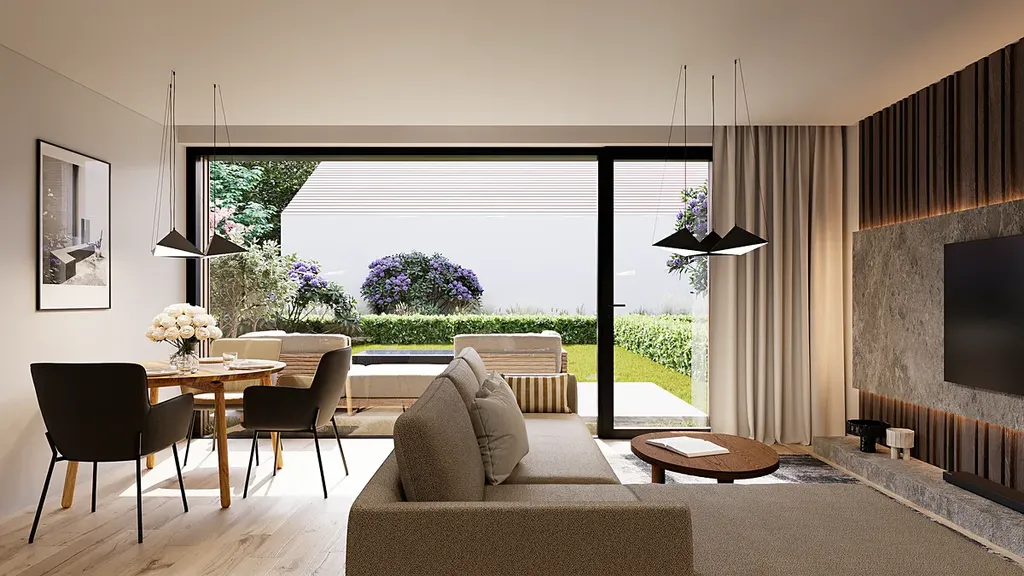 Přízemní byty disponují vlastními zahradami, byty ve vyšších podlažích pak terasami nebo balkóny s výhledy do zeleně a okolní vilové čtvrti. Energetická náročnost budovy je PENB B – nízkoenergetické, úsporné bydlení.