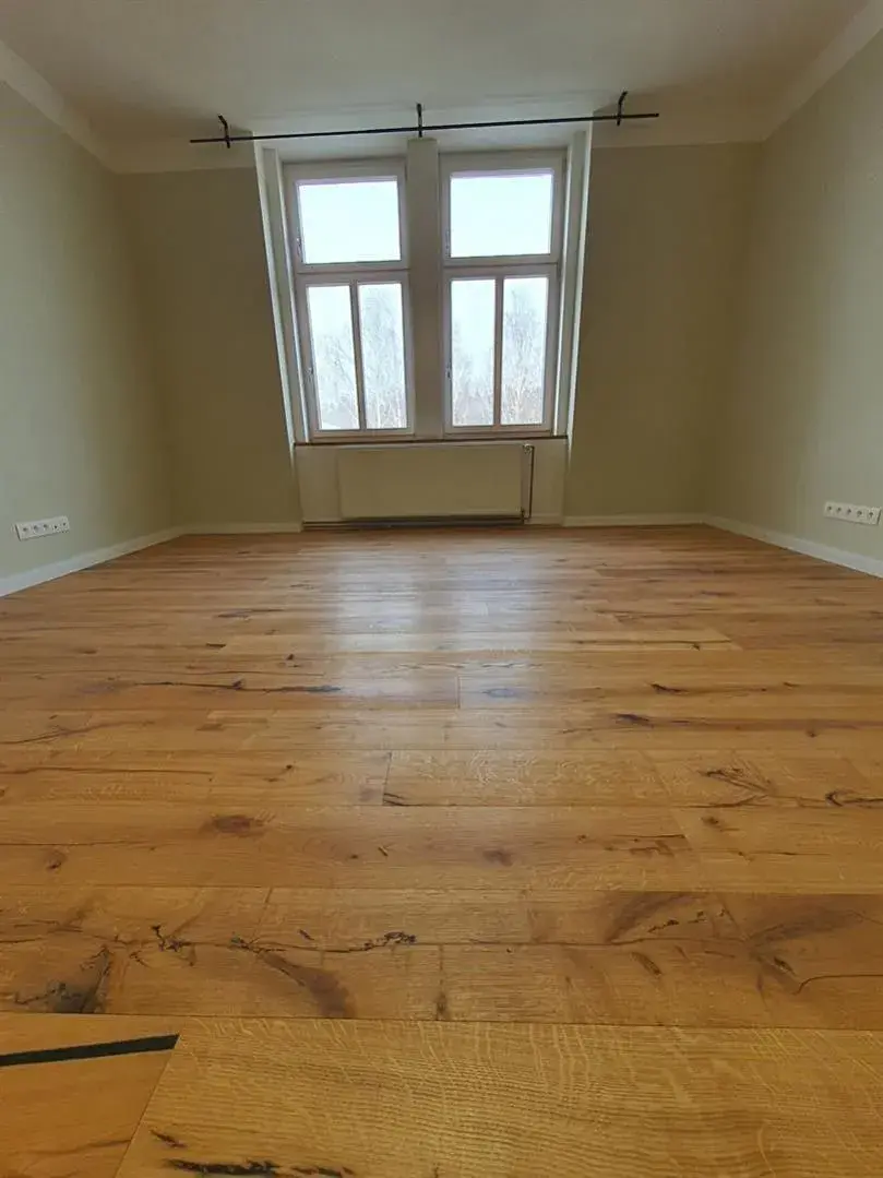 V bytě jsou udělány nové rozvody vody, odpadů, topení i elektřiny. Zdi jsou nově omítnuty, aby byla zaručena rovnost a kvalita stěn. V pokojích jsou položeny nové dřevěné podlahy z kvalitního masivu. Dřevěné prvky prolínají celý byt nové přírodní dřevěné parapety, obložení kuchyně, doplňky v koupelně.