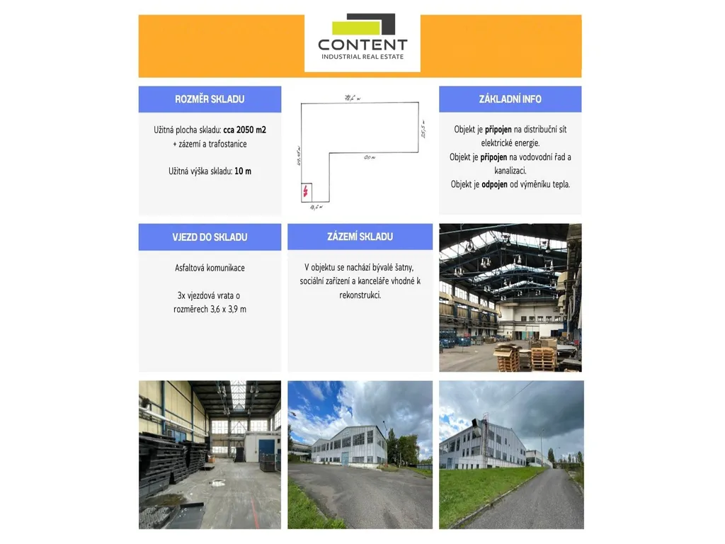 V zastoupení majitele a bez provize nabízíme skladové nebo výrobní prostory o velikosti 2050 m² v průmyslové zóně, s rychlým napojením na dálnici D4.