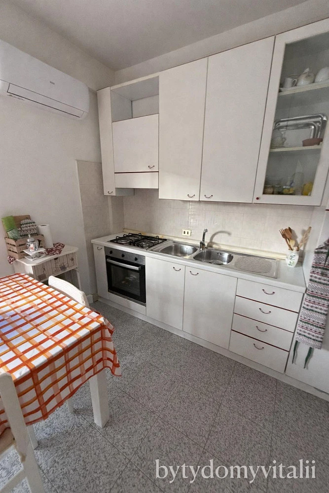 Byt 3+kk s dvěma ložnicemi se nachází v centru Scalea na Via Lauro. Je v prvním patře bytového domu. U bytu je prostorný, rohový balkon o rozloze 18 m². Je vybavený klimatizací a v koupelně je nové potrubí. Z bytu máte všude blízko: kavárny, restaurace, obchody. K bytu náleží velká garáž, do. které se vchází jak z venku, tak z vnitřního schodiště. Schody v domě jsou po rekontrukci a dům má novou fasádu.