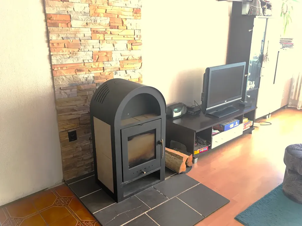 Pohodlné schodiště rozděluje horní patro na dva byty. Větší 95m2 s obývacím pokojem s kuchyní, dvěma pokoji a sociálním zařízením. Menší 87,5m2 s obývacím pokojem kuchyní, sociálním zařízením a jedním pokojem. Vytápění je zajištěno plynovým kotlem 1 rok stáří, dvěma krbovými kamny a krbem v přízemí.