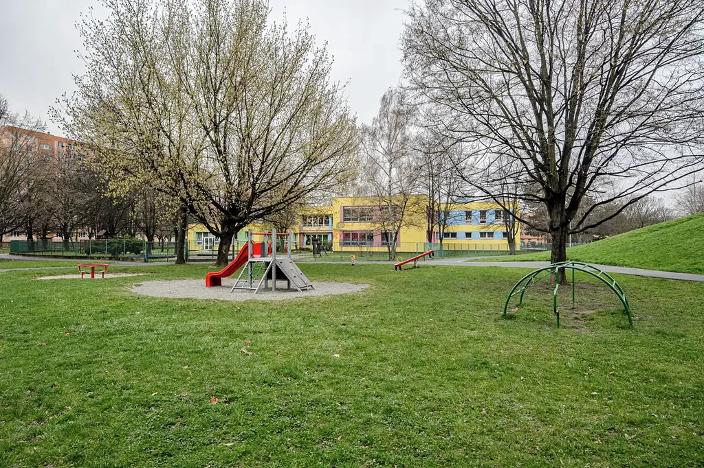 Lokalita s veškerou občanskou vybaveností, přesto plná zeleně, dostatku parkovacích míst a v bezprostřední blízkosti MHD, školy a školky, dětské hřiště za domem.
