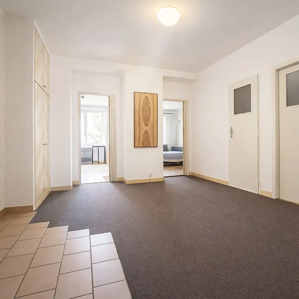 Dispozice bytu je velmi praktická a nabízí dostatek prostoru pro rodinné bydlení i investiční záměr. Centrem bytu je prostorná předsíň, ze které vedou vstupy do tří samostatných neprůchozích pokojů a kuchyně. Dispoziční řešení tak poskytuje dostatek soukromí i variabilitu při budoucí úpravě interiéru.