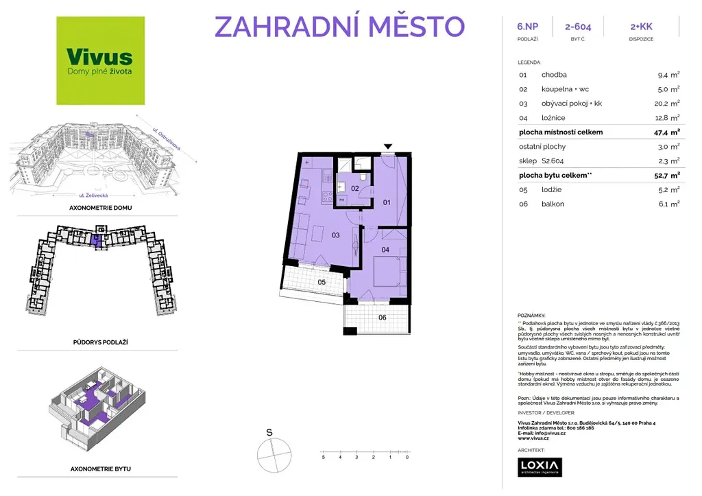 Praktický byt s příjemnou lodžií a balkonem se nachází v právě budovaném projektu VIVUS ZAHRADNÍ MĚSTO. Ten je situován jen pár minut chůze od vlakové stanice Zahradní Město, ze které je možné dojet za 11 minut do centra Prahy.