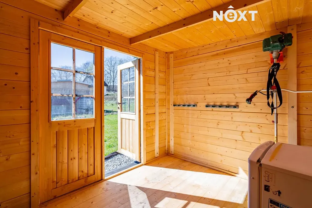 Na pozemku se nachází zahradní domek na nářadí, do kterého je již zavedena elektřina, což výrazně zvyšuje komfort při užívání.
