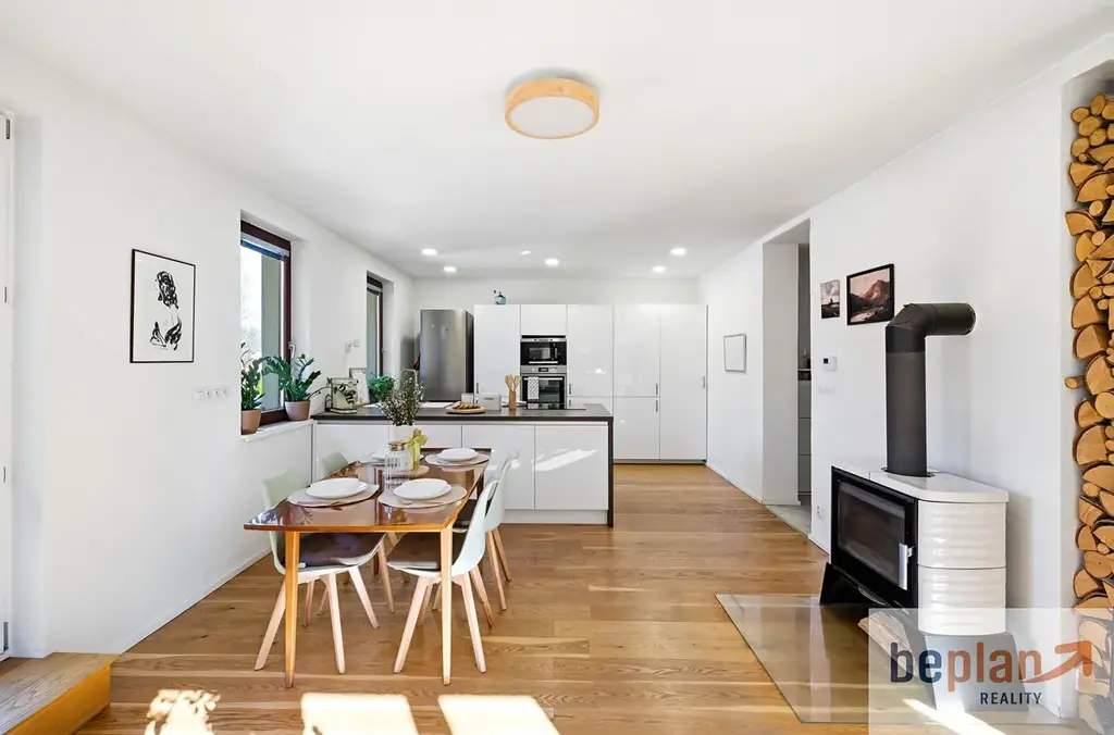 Nabízíme k prodeji útulný dům v obci Kamenice - Ládví, který splňuje nároky moderního bydlení. Dům o dispozici 6kk zahrnuje prostorný obývací pokoj s kuchyní a přímým vstupem na terasu, dva menší pokoje v přízemí, koupelnu s wc, komoru a technickou místnost. V patře jsou 3 pokoje, šatna a wc. Dům má příjemnou atmosféru s dostatkem místností i úložným prostorem.