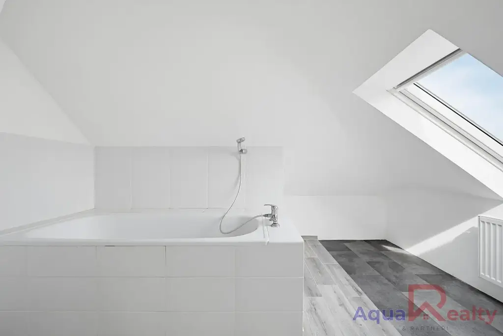 Byt je umístěný ve 3. a 4. podlaží a vznikl propojením klasického bytu s přestavěným podkrovním prostorem. Právě toto řešení vytváří jedinečný charakter nemovitosti a zároveň ponechává další potenciál druhá část půdního prostoru nabízí možnost budoucího odkupu od SVJ a následného rozšíření bytu o další místnosti dle vlastních představ.