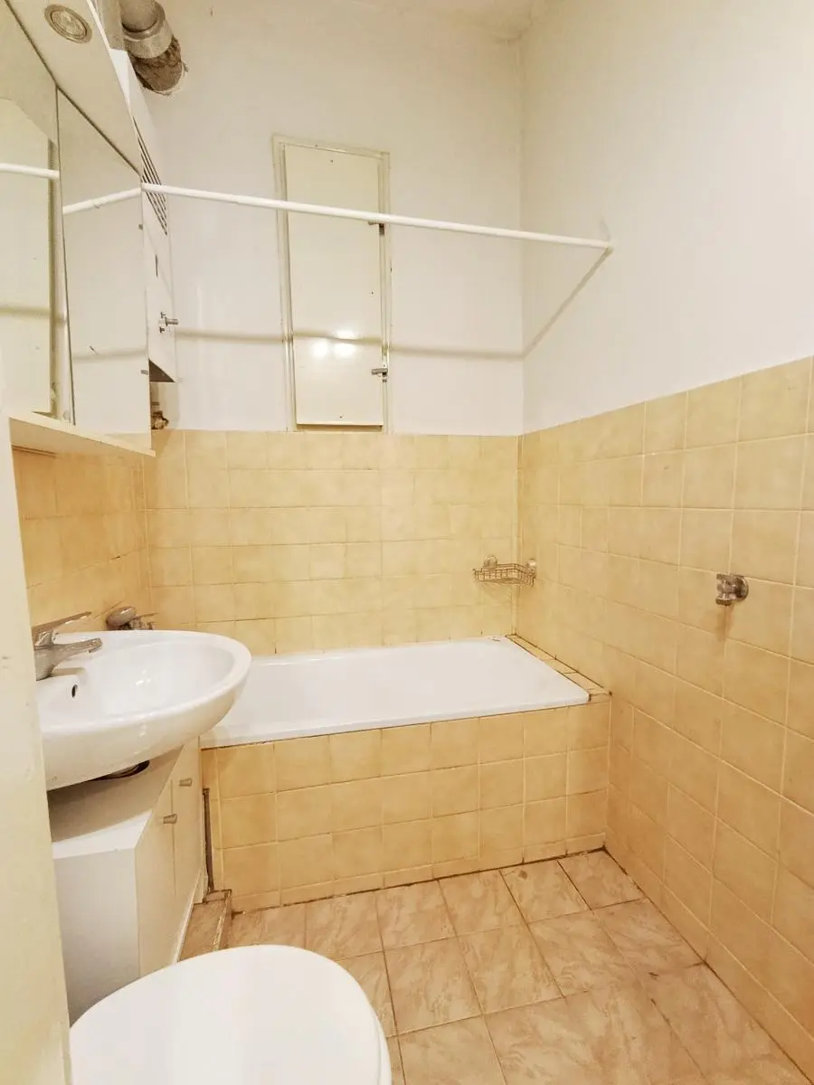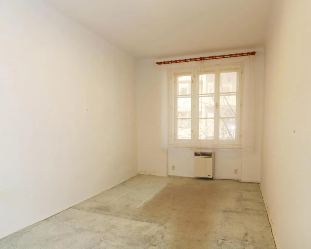 Byt je neadaptovaný a vyžaduje celkovou rekonstrukci. Praktická dispozice bytu zahrnuje předsíň se vstupem do všech ostatních místností bytu, pokoj s kuchyňským koutem, ložnici, koupelnu společnou s WC a malou komoru. Standardem bytu jsou špaletová okna s orientací na sever do klidné ulice, starší kuchyňská linka s kombinovaným sporákem, původní dřevěné dveře do dřevěných zárubní, podlahy - kobercová krytina v pokojích a předsíni a keramická dlažba v koupelně, vana, umyvadlo, kombi WC. Ohřev vody je třeba nově vyřešit, stará plynová karma byla odpojena od kouřovodu a není tak funkční. Vytápění zajišťují plynová tělesa WAW v pokojích.