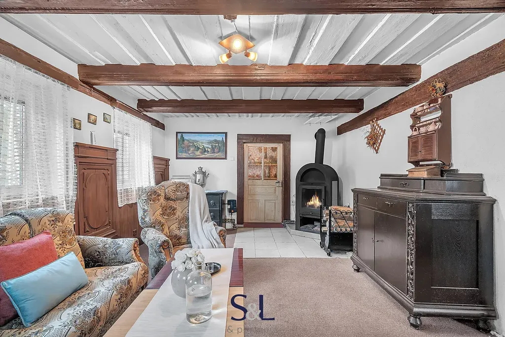 • Vytápění a ohřev vody je zajištěno kombinovaným plynovým kotlem s rozvody do radiátorů, případně lze využít krbových kamen s výměníkem. V ložnici jsou pak další kamna typu „petry“.