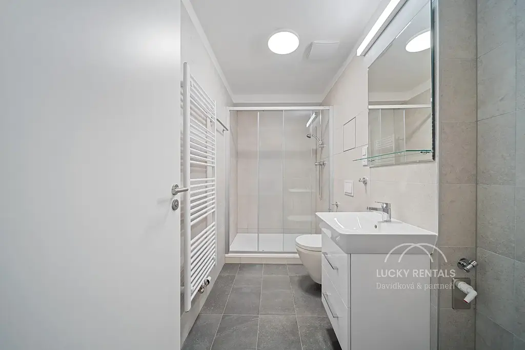 K bytu je možnost pronájmu parkovacího stání v podzemním podlaží domu za poplatek 1 500 Kč měsíčně.
