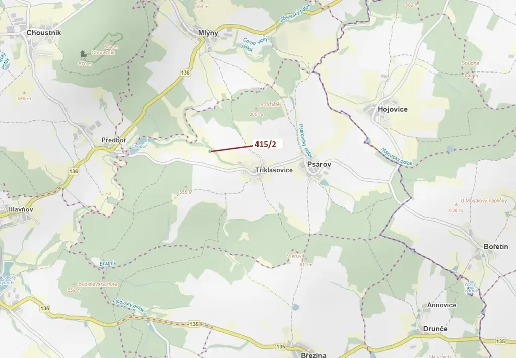 Lesní pozemek o výměře 1251 m2, parcelní číslo 415/2, podíl 1/1, katastrální území Tříklasovice, obec Psárov, obec s rozšířenou působností Tábor, okres Tábor, Jihočeský kraj. Po těžbě.