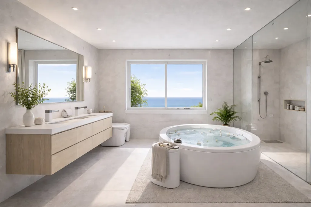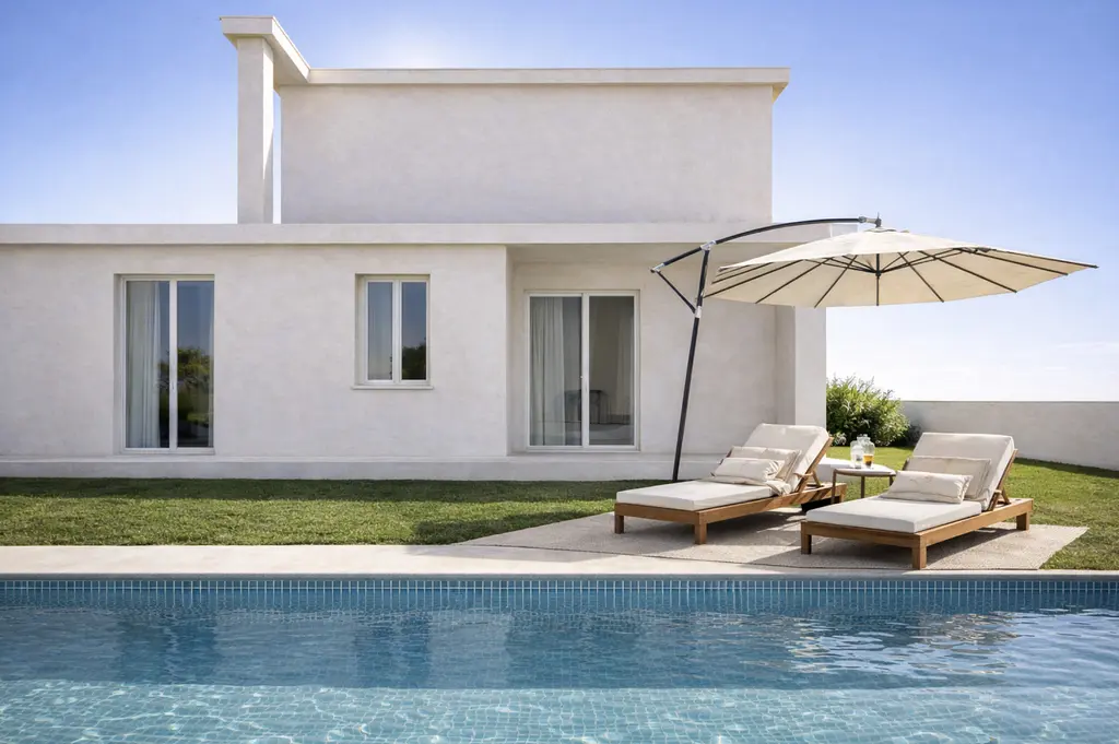 Architektura kombinuje čisté moderní linie s tradičním středomořským stylem.