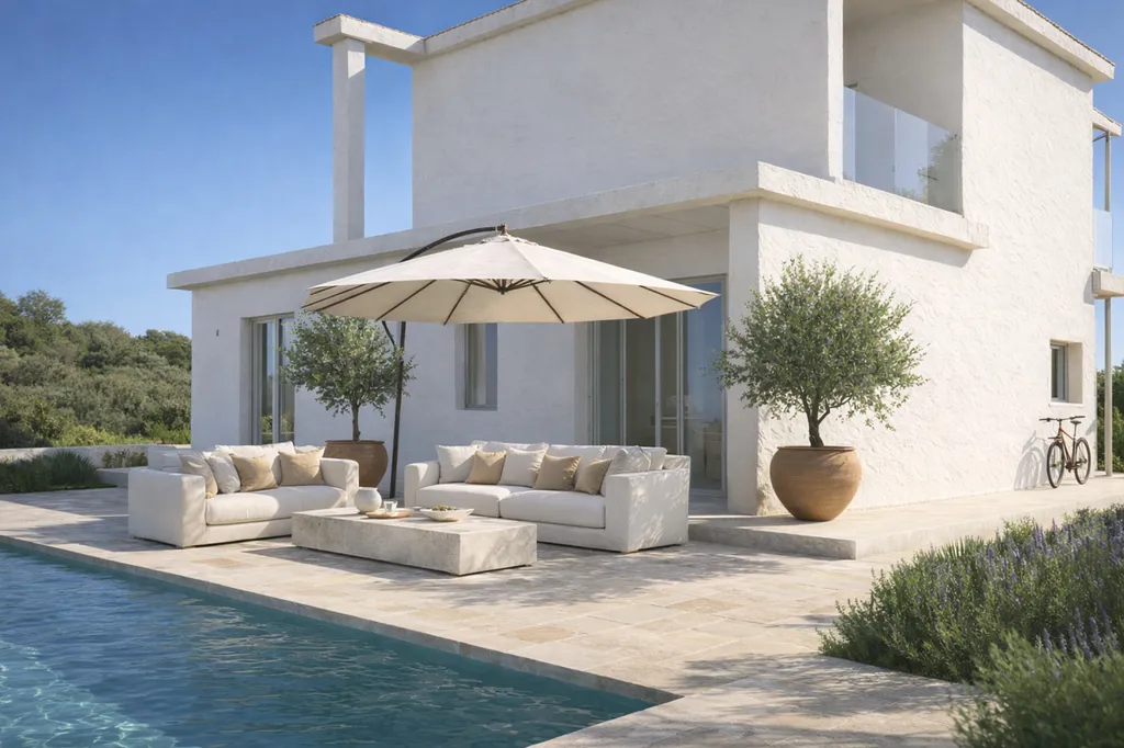 Tato výjimečná vila je součástí projektu Mediterranean White Collection od Move to Sardinia, který propojuje moderní středomořskou architekturu, dechberoucí výhledy na moře a vysoký standard výstavby. Nemovitost je ideální pro ty, kteří hledají luxusní bydlení s důrazem na soukromí, přírodu a jedinečné západy slunce.