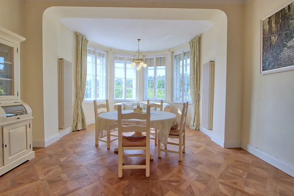 Dispozice impozantní villy 5+1 je doplněna samostatným ateliérem (cca 40 m²) se zimní zahradou, kuchyňkou a koupelnou, což nabízí skvělé možnosti pro hosty, domácí kancelář či kreativní práci. Interiér je zařízen v duchu anglického stylu s autentickým nábytkem a působí dojmem historického venkovského sídla. Vila prošla citlivou rekonstrukcí v letech 2009–2023 – zateplení, nová okna s izolačními skly, nové rozvody, tepelné čerpadlo LG, nově instalované ústřední vytápění, kachlová kamna i podlahové topení v koupelnách a ateliéru. O bezpečnost se starají předokení rolety. Dům má velice nízké provozní náklady a je v perfektním stavu. Využít ho můžete pro celoroční, trvalé bydlení vaší rodiny. Nebo jako letní, čí víkendové sídlo. Samozřejmě s ohledem na polohu přímo u řeky Sázavy, může být finančně zajímavý i pronájmy villy. Neboť pozemek navazuje na volně přístupný les, k řece vede malebná zahrada s molem a loďkou – ideální pro rybáře, vodáky, cyklisty a milovníky přírody. Výhled na řeku dodává tomuto místu kouzlo, které jinde nenajdete. A můžete se jím kochat hned z několika teras, která villa nabízí, úchvatný pohled ...