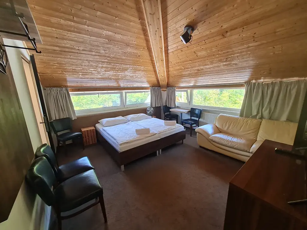 Ve 3.NP v podkroví mají své místo další tři apartmány, jeden čtyřlůžkový (dvě místnosti), jeden třílůžkový (jedna místnost) a jeden dvoulůžkový, všechny s koupelnou a WC.