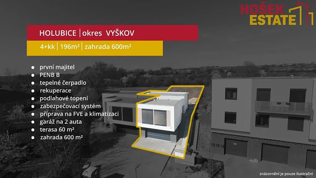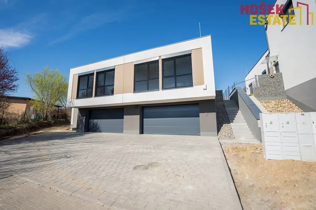 Hošek Estate vám exkluzivně nabízí k prodeji moderní rodinný dům o dispozici 4+kk s pracovno v oblíbené lokalitě Holubice u Brna.
