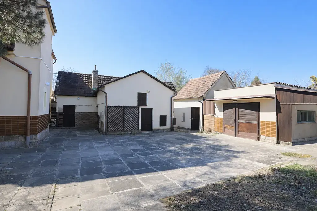 Na zadní části pozemku se nachází tři samostatné stavby, které slouží jako garáž a kůlny, a poskytují tak dostatek prostoru pro parkování, uskladnění věcí i zázemí pro hobby nebo zahradní techniku. Velkým benefitem je prostorná zahrada, která zajišťuje klid, soukromí a široké možnosti využití pro rodinný život.