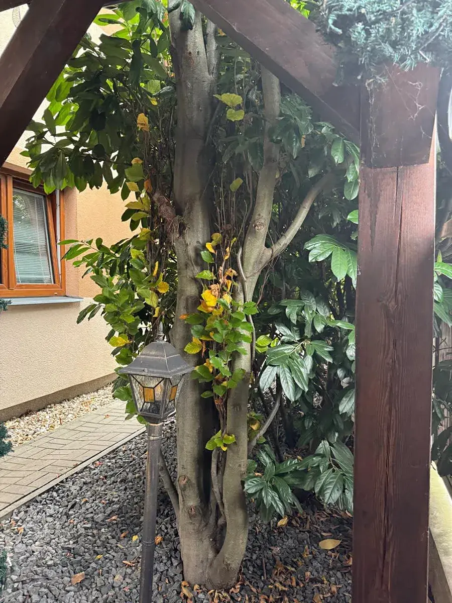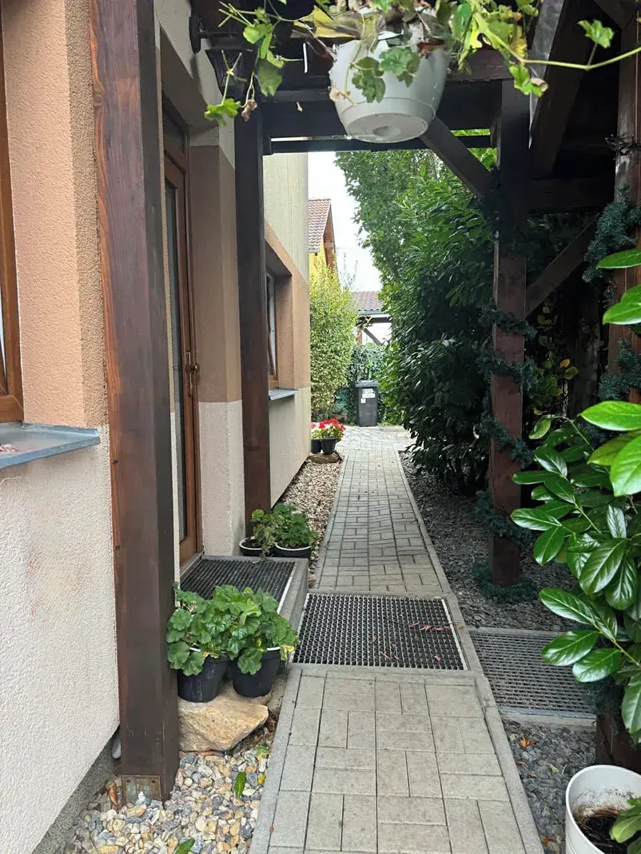 Pozemek o velikosti 638 m² je pečlivě udržovaný a vybaven automatickým zavlažovacím systémem. Živý plot, okrasné stromy a keře zajišťují soukromí a bezpečné prostředí pro děti.