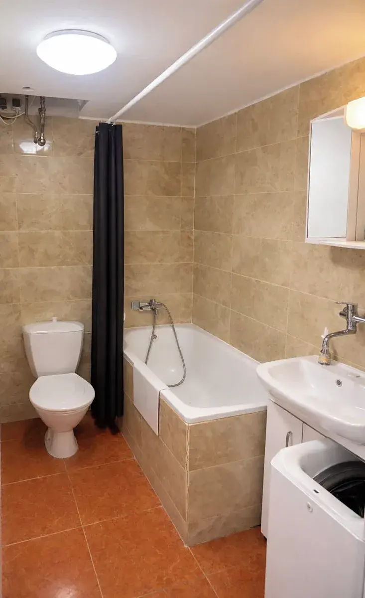 Dispozici tvoří obývací pokoj s plně vybaveným kuchyňským koutem (včetně všech spotřebičů), samostatná ložnice a koupelna s vanou a pračkou. Byt je zařízen pohovkou, šatní skříní a postelí, což zajišťuje komfortní bydlení bez nutnosti dalších investic.