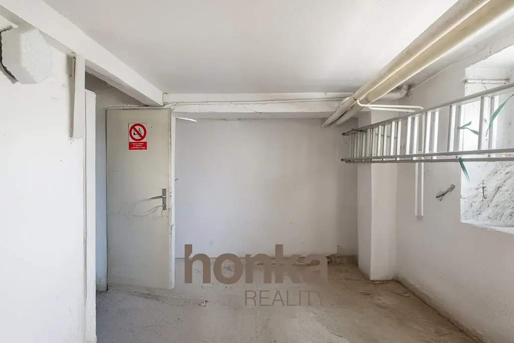 Technické zázemí, skladovací prostory, garáž pro 1 vůz a kancelář s kuchyňkou.