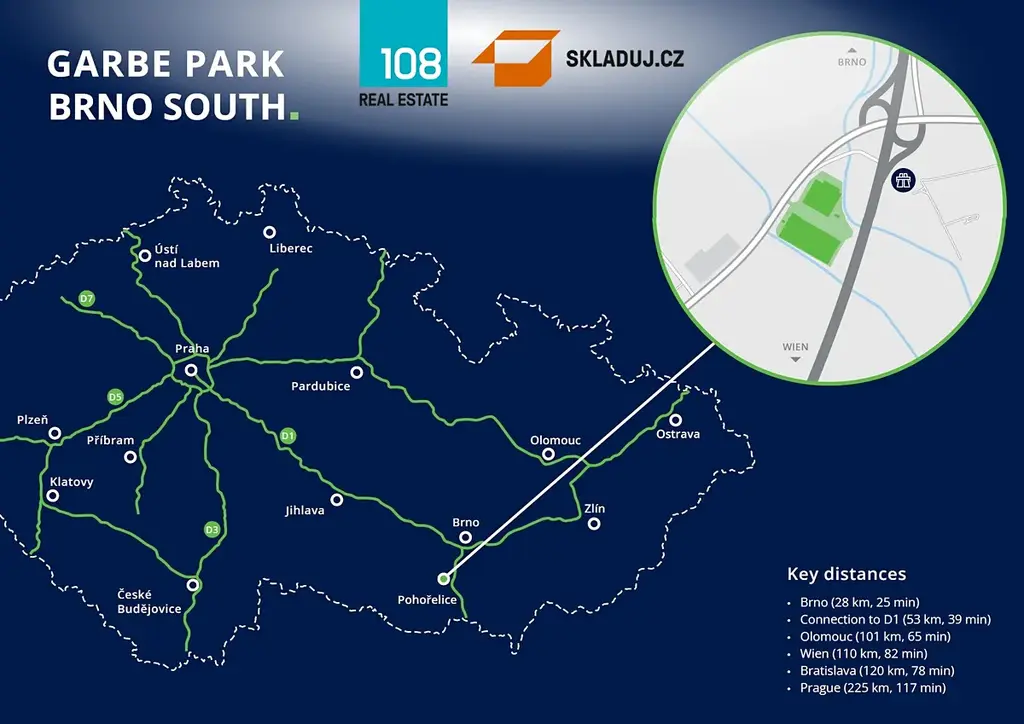 - v blízkosti města Brna s výbornou dostupností na dálnici D52