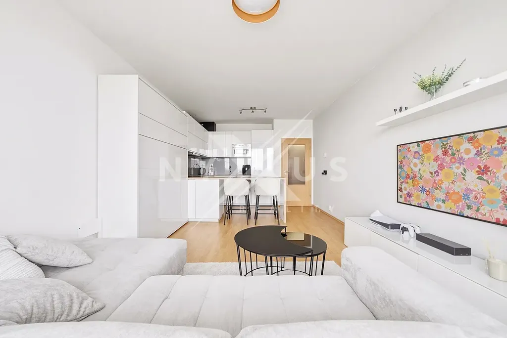 Přesně tak působí tento byt 2+kk s vnitřní užitnou plochou 59,8 m², lodžií o velikosti 7,5 m², sklepem a garážovým stáním. Dispozice je navržená tak, aby dobře fungovala pro jednotlivce i pár, kteří chtějí bydlet pohodlně a bez zbytečných kompromisů. Obytná část s kuchyňskou linkou tvoří přirozené centrum bytu a navazuje na lodžii. Ta není jen doplňkem na papíře, ale místem, které v teplejších měsících přirozeně rozšiřuje bydlení o prostor pro ranní kávu, večerní klid nebo chvíli na čerstvém vzduchu.