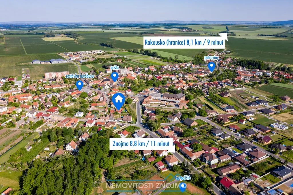 Výhodou je také výborná dostupnost (cca 10 minut do Znojma a pouhých 5 minut od rakouských hranic).