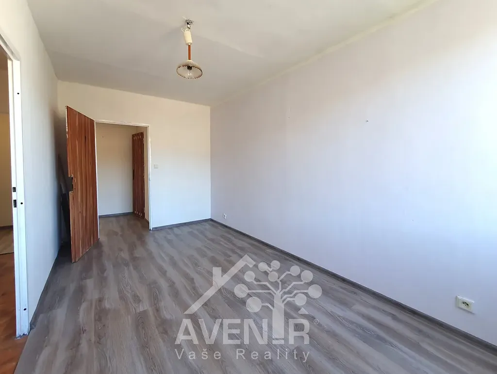 Dispoziční řešení: obývací pokoj 18 m² + lodžie 7.2 m², pokoj 14.4 m², pokoj 11.8 m², kuchyně 10.5 m² + spíž 0.6 m², chodba 7.9 m², koupelna s vanou 2.6 m², samostatné WC 1 m², komora (šatna) 1.9 m² a sklepní kóje 1.1 m² v přízemí budovy. V bytě jsou plastová okna, na podlaze linoleum, plovoucí podlaha nebo dlažba. Byt je v původním stavu s umakartovým jádrem a zasloužil by rekonstrukci.
